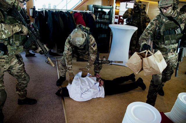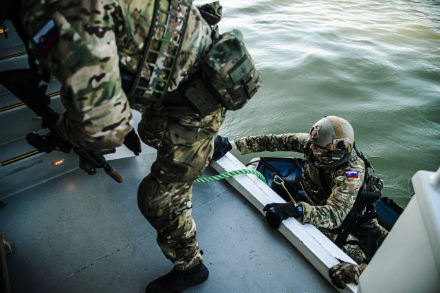 Súčasťou programu konferencie bola i prezentácia vybraných spôsobilostí SŠO. Hlavným námetom dynamickej ukážky bolo po dôkladnom zbere informácií eliminovať nepriateľskú aktivitu protivníka, ktorý sa vydával za obsluhujúci lodný personál. „Podľa zistených informácií bol nepriateľ ozbrojený strelnou i tzv. chladnou zbraňou a pripravený uškodiť alebo zlikvidovať prítomných vysokých predstaviteľov. Týmto sa stal cieľom s vysokou prioritou,” priblížil podplukovník Pažický.