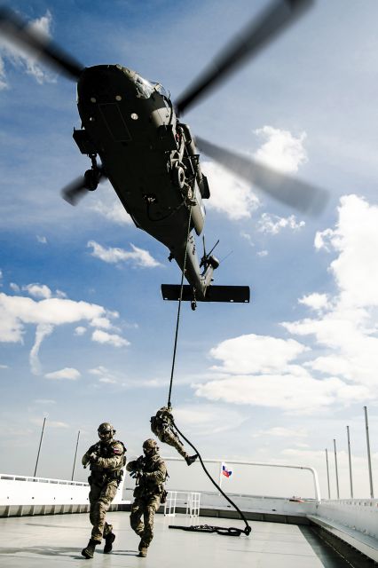 Na zastavenie pohybujúcej sa lode, na ktorej palube sa nachádzal objekt určený k eliminácii, bola podľa neho využitá sila vojenského vrtuľníka a varovné výstrely. „Infiltráciu operátori zo SŠO, konkrétne zo žilinského 5. pluku špeciálneho určenia, realizovali člnmi po vodnej hladine i vzdušnou cestou spustením sa po hrubom lane z vrtuľníka UH-60M Black Hawk slovenských vzdušných síl. Rýchle obsadenie lode, prevzatie kontroly nad prostredím a chirurgicky presný úder malo za následok úspešné odzbrojenie a zneškodnenie nepriateľa.” dodal.