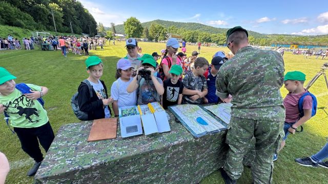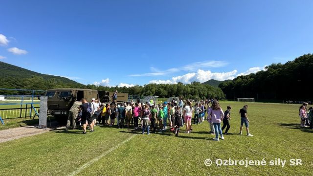 Medzinárodný deň detí s vojakmi v Rožňave Pri príležitosti Medzinárodného dňa detí zorganizovali vojaci dňa 3. júna 2024 na futbalovom ihrisku v Rožňave spolu s políciou, hasičmi a zdravotníkmi Medzinárodný deň detí s vojakmi v Rožňave s početnou účasťou do 1800 detí z mestských a okolitých škôl. Deti privítal osobne veliteľ 5. delostreleckého pluku plukovník Ján HRIC. Školáci i deti s rodinami mohli počas dňa vidieť okrem vojenskej techniky aj vozidlá a techniku Hasičského záchranného zboru, Polície Slovenskej republiky, Vojenskej polície, Rožňavskej mestskej polície i Červeného kríža. Pre deti sme pripravili ukážky sebaobrany, kynológie, hasičských pretekov, maľovania na tvár, záchranárskych spôsobilostí, ručných zbraní, spojovacej techniky, bojovej techniky, topografických prístrojov, prezentáciu regrutačnej skupiny Košice, deti si mohli vyskúšať sadnúť do našej techniky, vyskúšať si rôzne súťaže na prekážkovej dráhe, za ktoré boli sladko odmenené. Ukážkovú poslušnosť, súžitie majiteľa a psa predviedli členovia z Klubu športovej kynológie v Rožňave spolu s členmi Policajného zboru z oddelenia kynológie. Deti si potom mohli vyskúšať aj súťaženie a veľký záujem prejavili o ukážku praktickej sebaobrany v podaní rožňavských vojakov.