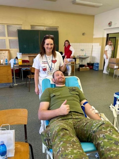 Deň solidarity a ľudskosti na 11. brigáde Vzdušných síl Nitra Dňa 27. novembra 2025 sa na útvare 11. brigády Vzdušných síl v Nitre niesol deň v znamení solidarity, spolupatričnosti a ochoty pomôcť. Do kasární zavítal mobilný tím Národnej transfúznej služby SR, aby umožnil profesionálnym vojakom darovať to najvzácnejšie – krv, ktorá zachraňuje životy. Vojaci nezaváhali. Od skorého rána sa pri odbere striedali skúsení darcovia, ale aj tí, ktorí prišli prvýkrát – často s prirodzenou obavou, ale s pevným presvedčením, že to má zmysel. Každý z nich si uvedomoval, že ich pár minút môže pre niekoho znamenať druhú šancu. Príslušníci brigády často hovoria, že služba vlasti nie je len o uniforme, ale aj o ľudskosti. A práve takéto chvíle to potvrdzujú najviac. Národná transfúzna služba ocenila vysoký záujem a ochotu vojakov pomôcť, keďže potreba krvi je stále veľká – či už pri úrazoch, operáciách alebo liečbe vážnych ochorení. Tento deň bol dôkazom, že aj v hektickej službe si vojaci nachádzajú čas myslieť na druhých. A práve ich príklad môže povzbudiť aj ostatných – darovať krv je jednoduchý, no mimoriadne silný čin, ktorý môže zachrániť život človeku, ktorého možno nikdy nestretneme. A predsa je to jeden z najväčších prejavov ľudskosti.