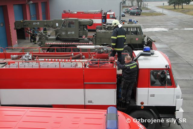 V posledný februárový deň sa uskutočnil súčinnostný výcvik vojenskej hasičskej jednotky zmiešaného krídla Sliač a hasičskej záchrannej služby Letiska Sliač a. s. Témou výcviku bolo oboznámenie sa s technickými a vecnými prostriedkami hasičských jednotiek, ktorými obidve jednotky disponujú.